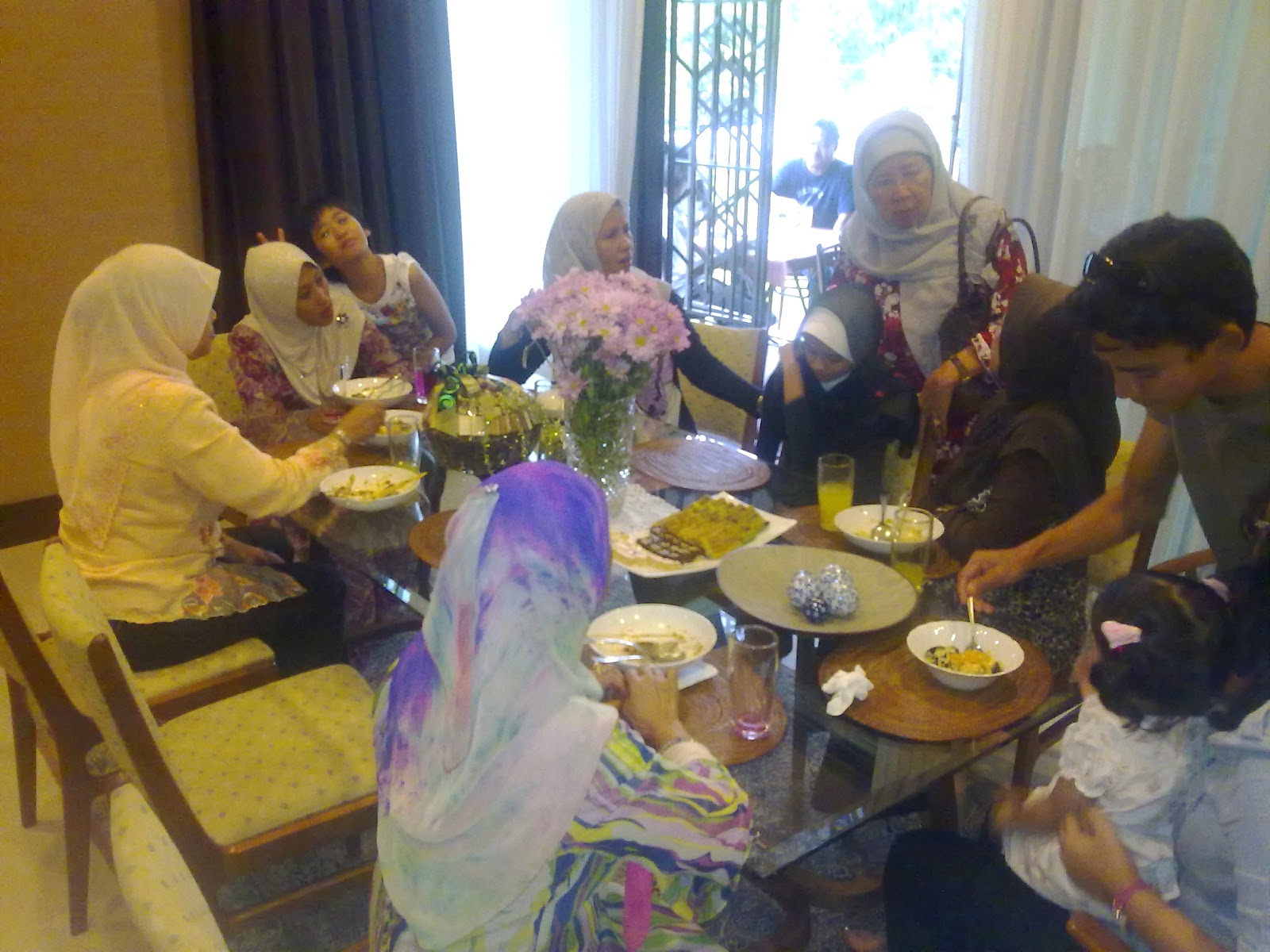 Not to be outdone, the menfolk held court at the dining table! They had their own guy talk (man-language for gossip!).... as you can see, its a very 1Malaysia group! Hasleen, the man of the house, is seated at the head of the table. Unfortunately, the Babams did not take a close-up of Hasleen...the Babams swears that Hasleen looks a lot like